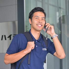 社内で業務を行う一般的なエンジニアと異なり、フィールドエンジニアは顧客先での業務をメインに行います。ハイテムのフィールドエンジニアは機械据え付け時の指導や修理の対応を主に行っており、常にお客様に一番近いところで仕事を行います。